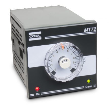 O temporizador eletrônico MT72M é um instrumento multiescala, multifunção, versátil e de fácil utilização com 2 saídas relé SPDT. Possui micro chaves (DIP interno) para configurar a base de tempo (de 1 segundo a 10 horas) e a função de temporização (10 modos de funcionamento).